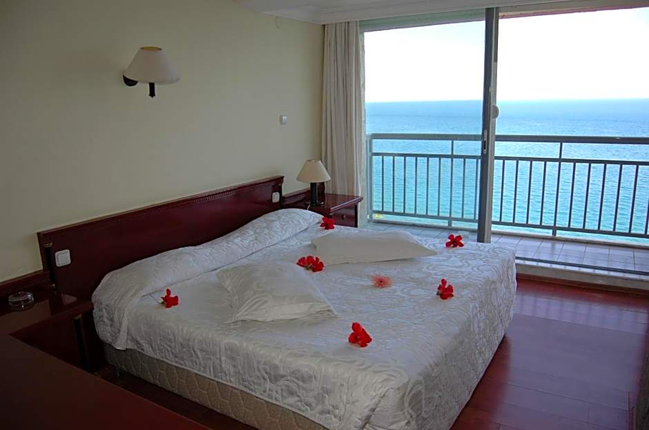 SeaView Room is 215 square feet and includes a king-size bed 150-183 width plus balcony, terrace, extra beds on demand, satellite tv , hairdryer, and safe.
